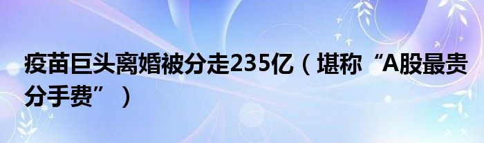 大家好,綜合小編來為大家講解下。疫苗巨頭離婚被分走235億,堪稱“A股最貴分手費”很多人還不知道,現在讓我們一起來看看吧!
