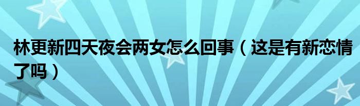 大家好,綜合小編來為大家講解下。林更新四天夜會兩女怎么回事,這是有新戀情了嗎很多人還不知道,現在讓我們一起來看看吧!