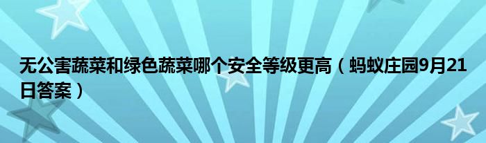 大家好,綜合小編來(lái)為大家講解下。無(wú)公害蔬菜和綠色蔬菜哪個(gè)安全等級(jí)更高,螞蟻莊園9月21日答案很多人還不知道,現(xiàn)在讓我們一起來(lái)看看吧!