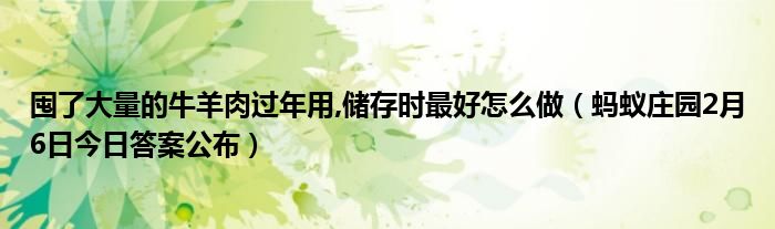 囤了大量的牛羊肉過年用,儲存時(shí)最好怎么做?答對就可以領(lǐng)取到180g小雞飼料哦,下面來看螞蟻莊園2月6日今日答案公布結(jié)果吧。