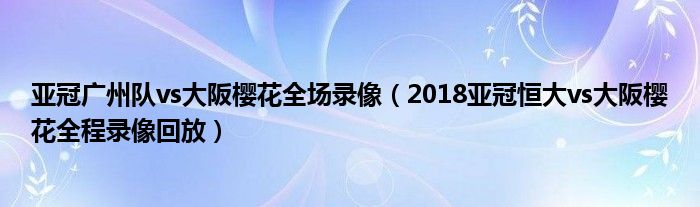 大家好,綜合小編來為大家講解下。亞冠廣州隊vs大阪櫻花全場錄像,2018亞冠恒大vs大阪櫻花全程錄像回放很多人還不知道,現在讓我們一起來看看吧!
