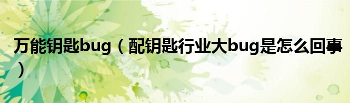 大家好,綜合小編來為大家講解下。萬能鑰匙bug,配鑰匙行業(yè)大bug是怎么回事很多人還不知道,現(xiàn)在讓我們一起來看看吧!