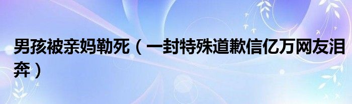 大家好,綜合小編來為大家講解下。男孩被親媽勒死,一封特殊道歉信億萬網友淚奔很多人還不知道,現在讓我們一起來看看吧!