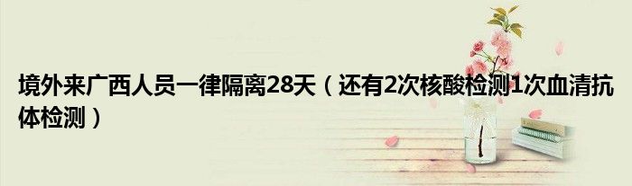大家好,綜合小編來為大家講解下。境外來廣西人員一律隔離28天,還有2次核酸檢測1次血清抗體檢測很多人還不知道,現在讓我們一起來看看吧!