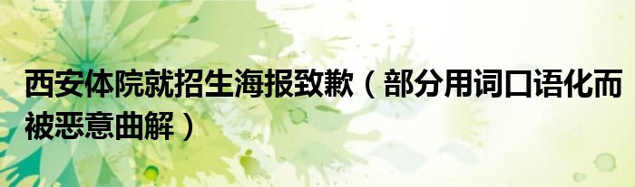 大家好,綜合小編來(lái)為大家講解下。西安體院就招生海報(bào)致歉,部分用詞口語(yǔ)化而被惡意曲解很多人還不知道,現(xiàn)在讓我們一起來(lái)看看吧!
