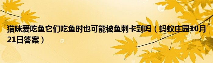 每日一題的螞蟻莊園小課堂又要開始咯,今天是2020年10月21日,小編接收到的問題是“貓咪愛吃魚它們吃魚時也可能被魚刺卡到嗎”,問題的答案是什么呢?跟著小編一起往下看吧。