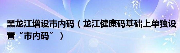 大家好,綜合小編來為大家講解下。黑龍江增設市內碼,龍江健康碼基礎上單獨設置“市內碼”很多人還不知道,現在讓我們一起來看看吧!