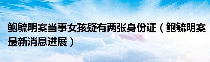 大家好,綜合小編來為大家講解下。鮑毓明案當事女孩疑有兩張身份證,鮑毓明案最新消息進展很多人還不知道,現在讓我們一起來看看吧!