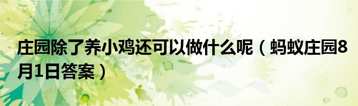 大家好,綜合小編來為大家講解下。莊園除了養小雞還可以做什么呢,螞蟻莊園8月1日答案很多人還不知道,現在讓我們一起來看看吧!