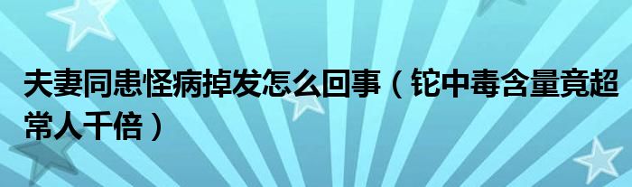 大家好,綜合小編來為大家講解下。夫妻同患怪病掉發(fā)怎么回事,鉈中毒含量竟超常人千倍很多人還不知道,現(xiàn)在讓我們一起來看看吧!