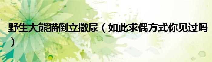 大家好,綜合小編來為大家講解下。野生大熊貓倒立撒尿,如此求偶方式你見過嗎很多人還不知道,現在讓我們一起來看看吧!