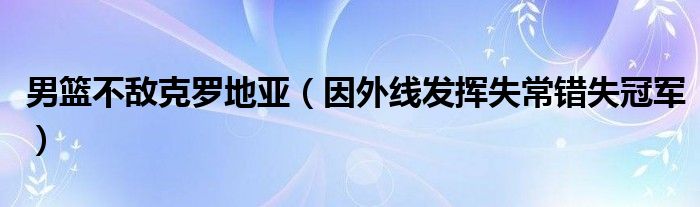 大家好,綜合小編來為大家講解下。男籃不敵克羅地亞,因外線發揮失常錯失冠軍很多人還不知道,現在讓我們一起來看看吧!