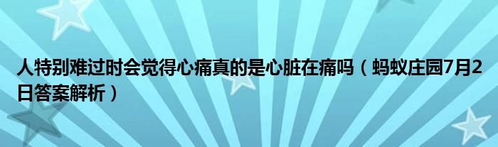 大家好,綜合小編來(lái)為大家講解下。人特別難過(guò)時(shí)會(huì)覺得心痛真的是心臟在痛嗎,螞蟻莊園7月2日答案解析很多人還不知道,現(xiàn)在讓我們一起來(lái)看看吧!