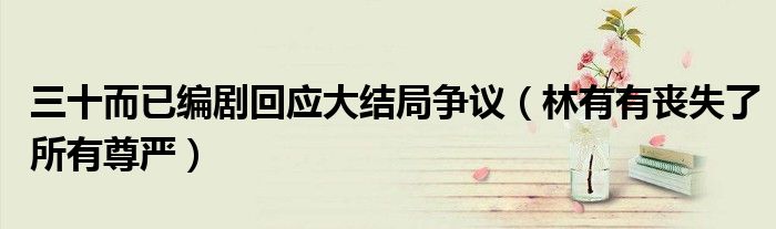 大家好,綜合小編來為大家講解下。三十而已編劇回應大結局爭議,林有有喪失了所有尊嚴很多人還不知道,現在讓我們一起來看看吧!