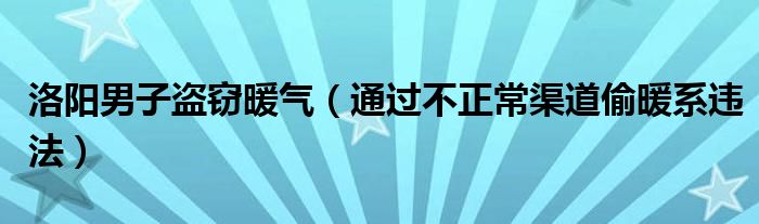 大家好,綜合小編來為大家講解下。洛陽男子盜竊暖氣,通過不正常渠道偷暖系違法很多人還不知道,現在讓我們一起來看看吧!