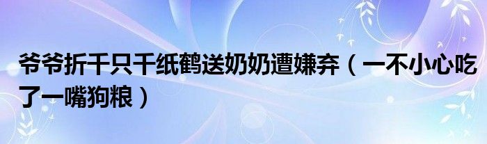 大家好,綜合小編來為大家講解下。爺爺折千只千紙鶴送奶奶遭嫌棄,一不小心吃了一嘴狗糧很多人還不知道,現(xiàn)在讓我們一起來看看吧!