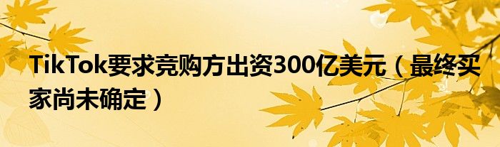 大家好,綜合小編來為大家講解下。TikTok要求競購方出資300億美元,最終買家尚未確定很多人還不知道,現在讓我們一起來看看吧!