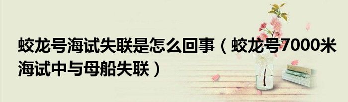 大家好,綜合小編來為大家講解下。蛟龍號海試失聯是怎么回事,蛟龍號7000米海試中與母船失聯很多人還不知道,現在讓我們一起來看看吧!