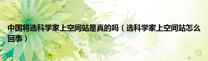 大家好,綜合小編來為大家講解下。中國將選科學(xué)家上空間站是真的嗎,選科學(xué)家上空間站怎么回事很多人還不知道,現(xiàn)在讓我們一起來看看吧!