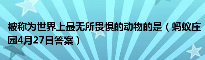大家好,綜合小編來(lái)為大家講解下。被稱為世界上最無(wú)所畏懼的動(dòng)物的是,螞蟻莊園4月27日答案很多人還不知道,現(xiàn)在讓我們一起來(lái)看看吧!