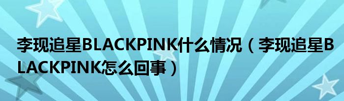 大家好,綜合小編來為大家講解下。李現追星BLACKPINK什么情況,李現追星BLACKPINK怎么回事很多人還不知道,現在讓我們一起來看看吧!