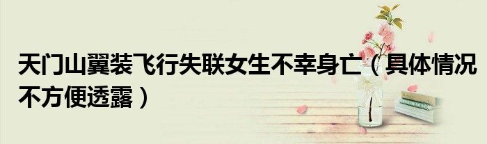 大家好,綜合小編來為大家講解下。天門山翼裝飛行失聯(lián)女生不幸身亡,具體情況不方便透露很多人還不知道,現(xiàn)在讓我們一起來看看吧!