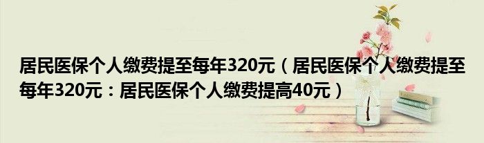 大家好,綜合小編來為大家講解下。居民醫保個人繳費提至每年320元,居民醫保個人繳費提至每年320元:居民醫保個人繳費提高40元很多人還不知道,現在讓我們一起來看看吧!