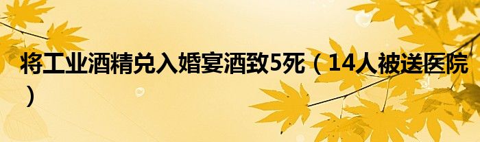 大家好,綜合小編來為大家講解下。將工業酒精兌入婚宴酒致5死,14人被送醫院很多人還不知道,現在讓我們一起來看看吧!
