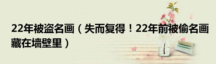 大家好,綜合小編來為大家講解下。22年被盜名畫,失而復得!22年前被偷名畫藏在墻壁里很多人還不知道,現在讓我們一起來看看吧!
