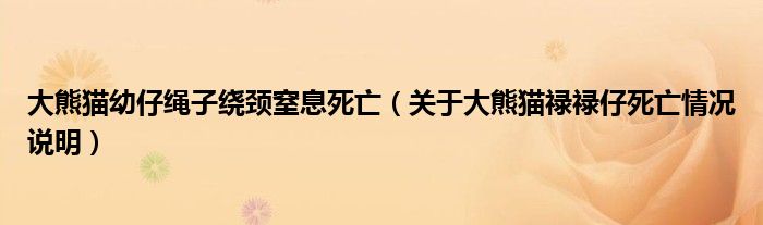 大家好,綜合小編來為大家講解下。大熊貓幼仔繩子繞頸窒息死亡,關于大熊貓祿祿仔死亡情況說明很多人還不知道,現在讓我們一起來看看吧!