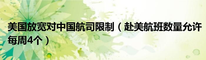 美國放寬對中國航司限制:美國交通部15日表示,放寬中國航空公司的赴美航班數量,每周將允許4個航班執飛往返美國的航線,立即生效。