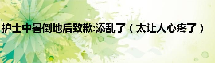 大家好,綜合小編來為大家講解下。護(hù)士中暑倒地后致歉:添亂了,太讓人心疼了很多人還不知道,現(xiàn)在讓我們一起來看看吧!