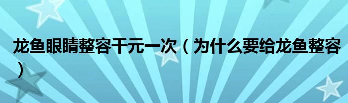 大家好,綜合小編來(lái)為大家講解下。龍魚(yú)眼睛整容千元一次,為什么要給龍魚(yú)整容很多人還不知道,現(xiàn)在讓我們一起來(lái)看看吧!