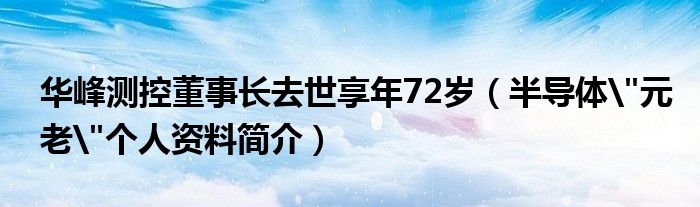 大家好,綜合小編來為大家講解下。華峰測控董事長去世享年72歲,半導體"元老"個人資料簡介很多人還不知道,現在讓我們一起來看看吧!