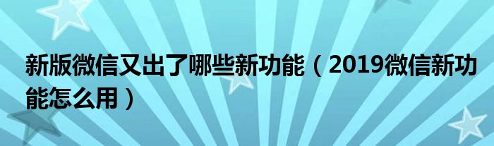 大家好,綜合小編來為大家講解下。新版微信又出了哪些新功能,2019微信新功能怎么用很多人還不知道,現在讓我們一起來看看吧!