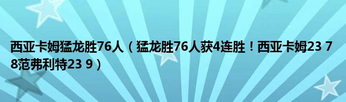 大家好,綜合小編來為大家講解下。西亞卡姆猛龍勝76人,猛龍勝76人獲4連勝!西亞卡姆23 7 8范弗利特23 9很多人還不知道,現在讓我們一起來看看吧!