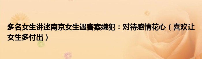 大家好,綜合小編來(lái)為大家講解下。多名女生講述南京女生遇害案嫌犯:對(duì)待感情花心,喜歡讓女生多付出很多人還不知道,現(xiàn)在讓我們一起來(lái)看看吧!