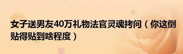 大家好,綜合小編來為大家講解下。女子送男友40萬禮物法官靈魂拷問,你這倒貼得貼到啥程度很多人還不知道,現在讓我們一起來看看吧!