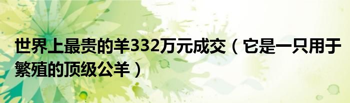大家好,綜合小編來為大家講解下。世界上最貴的羊332萬元成交,它是一只用于繁殖的頂級公羊很多人還不知道,現在讓我們一起來看看吧!