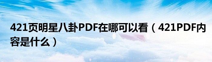 大家好,綜合小編來為大家講解下。421頁明星八卦PDF在哪可以看,421PDF內(nèi)容是什么很多人還不知道,現(xiàn)在讓我們一起來看看吧!