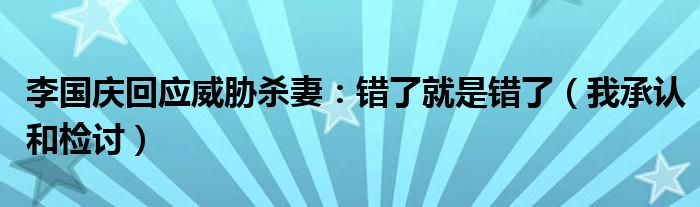 大家好,綜合小編來為大家講解下。李國慶回應威脅殺妻:錯了就是錯了,我承認和檢討很多人還不知道,現在讓我們一起來看看吧!