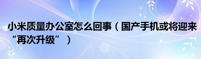 大家好,綜合小編來為大家講解下。小米質量辦公室怎么回事,國產手機或將迎來“再次升級”很多人還不知道,現在讓我們一起來看看吧!