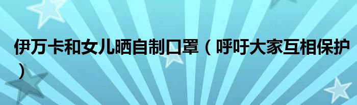 大家好,綜合小編來為大家講解下。伊萬卡和女兒曬自制口罩,呼吁大家互相保護很多人還不知道,現在讓我們一起來看看吧!