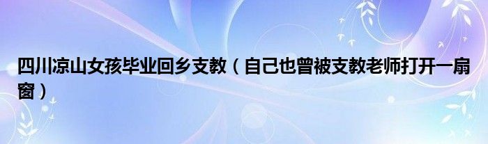大家好,綜合小編來為大家講解下。四川涼山女孩畢業回鄉支教,自己也曾被支教老師打開一扇窗很多人還不知道,現在讓我們一起來看看吧!