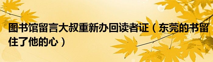 大家好,綜合小編來為大家講解下。圖書館留言大叔重新辦回讀者證,東莞的書留住了他的心很多人還不知道,現在讓我們一起來看看吧!