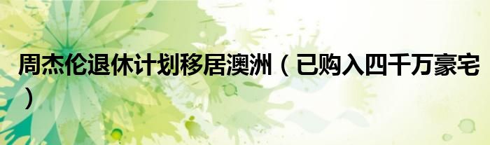 大家好,綜合小編來為大家講解下。周杰倫退休計劃移居澳洲,已購入四千萬豪宅很多人還不知道,現在讓我們一起來看看吧!
