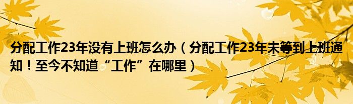 大家好,綜合小編來為大家講解下。分配工作23年沒有上班怎么辦,分配工作23年未等到上班通知!至今不知道“工作”在哪里很多人還不知道,現在讓我們一起來看看吧!