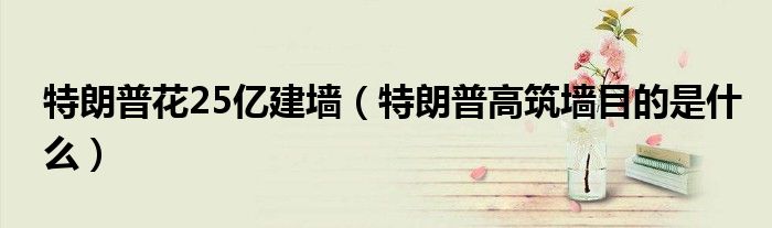 大家好,綜合小編來為大家講解下。特朗普花25億建墻,特朗普高筑墻目的是什么很多人還不知道,現在讓我們一起來看看吧!