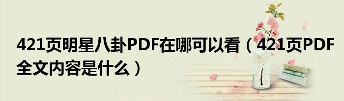 大家好,綜合小編來(lái)為大家講解下。421頁(yè)明星八卦PDF在哪可以看,421頁(yè)P(yáng)DF全文內(nèi)容是什么很多人還不知道,現(xiàn)在讓我們一起來(lái)看看吧!