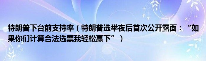 大家好,綜合小編來(lái)為大家講解下。特朗普下臺(tái)前支持率,特朗普選舉夜后首次公開(kāi)露面:“如果你們計(jì)算合法選票我輕松贏下”很多人還不知道,現(xiàn)在讓我們一起來(lái)看看吧!